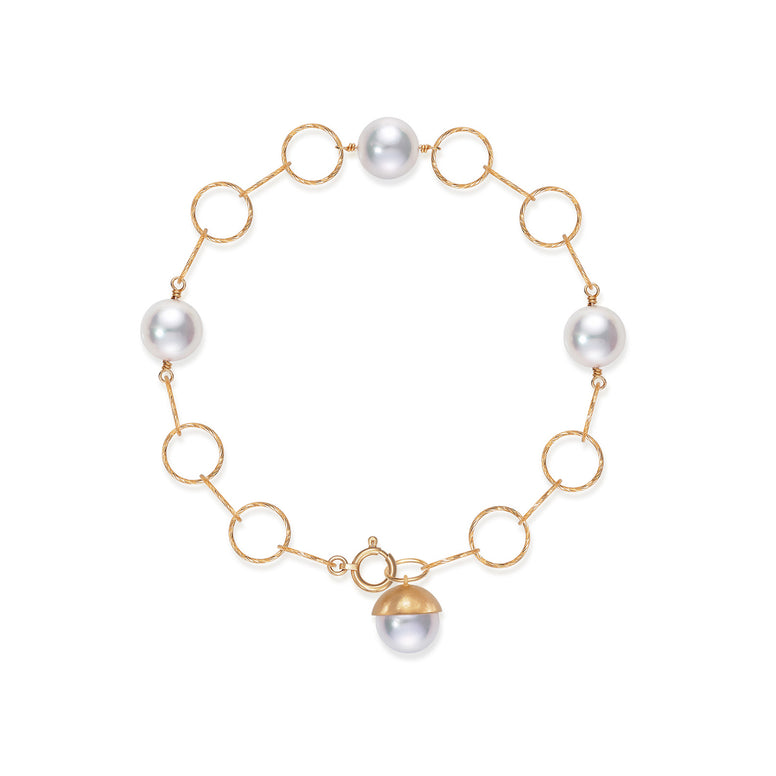 一つ一つの輪を職人が丁寧に繋ぎ合わせたスペシャルチェーンは、繊細な美しさで目を惹きます。どんぐりがコロコロと転がる様をイメージしたステーションタイプのブレスレットです。